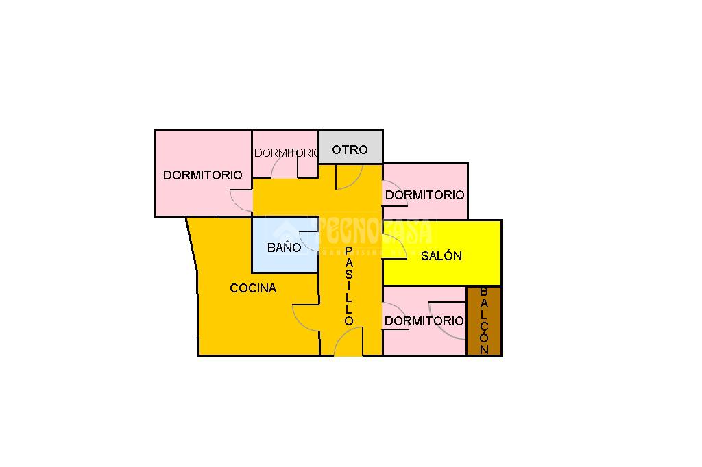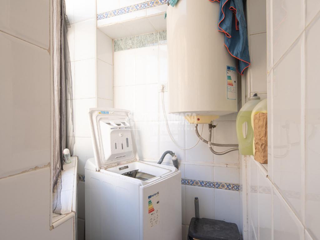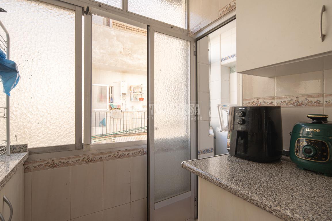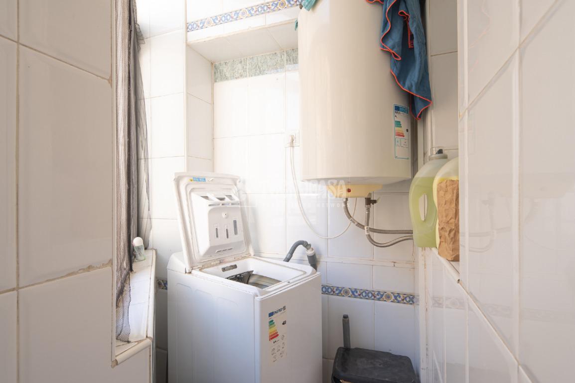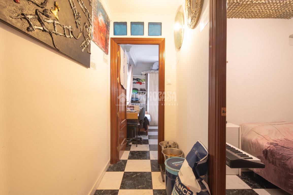 Al acceder a la vivienda (completamente de paredes lisas) encontramos un pasillo desde el cual se van distribuyendo todas las estancias, a izquierda y derecha. En la primera puerta a la izquierda encontramos la cocina con lavadero y, en la segunda siguiendo el pasillo de la entrada, el baño. Si continuamos hasta el final, también a mano izquierda se distribuyen dos de los dormitorios: la habitación doble y el cuarto acondicionado como estudio/habitación de invitados.