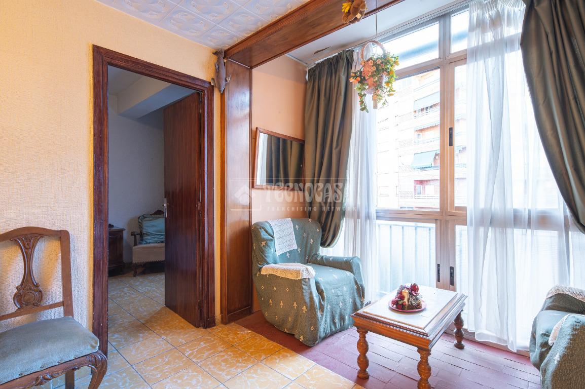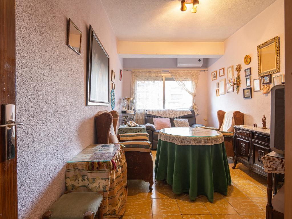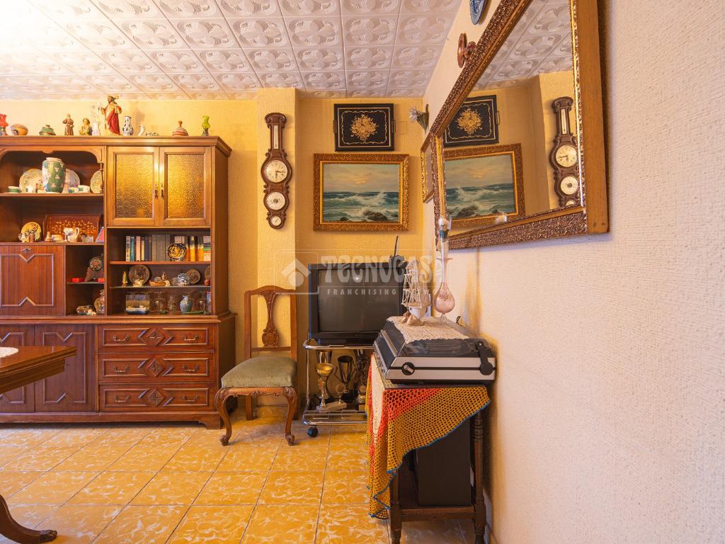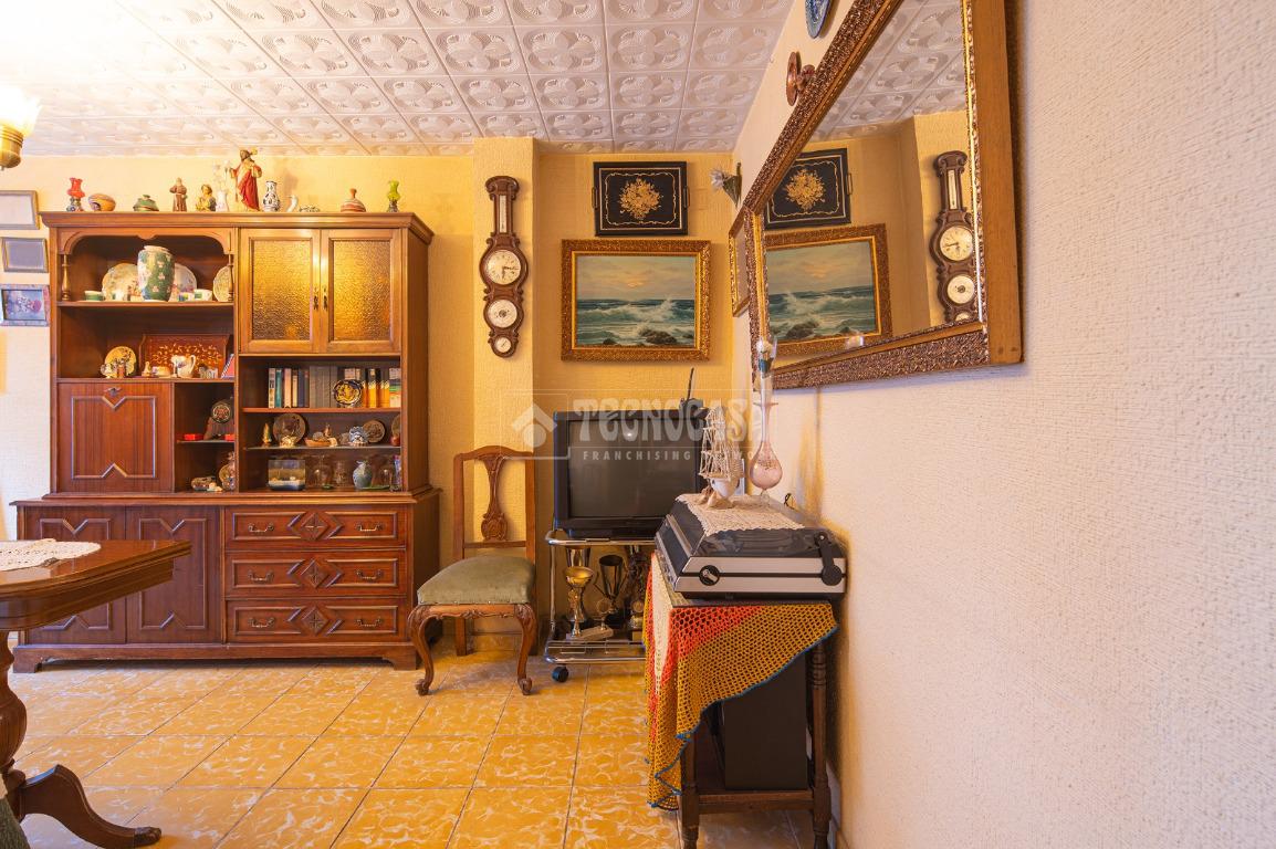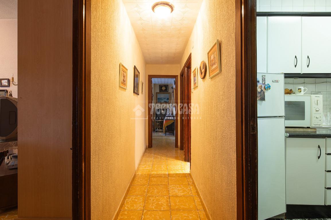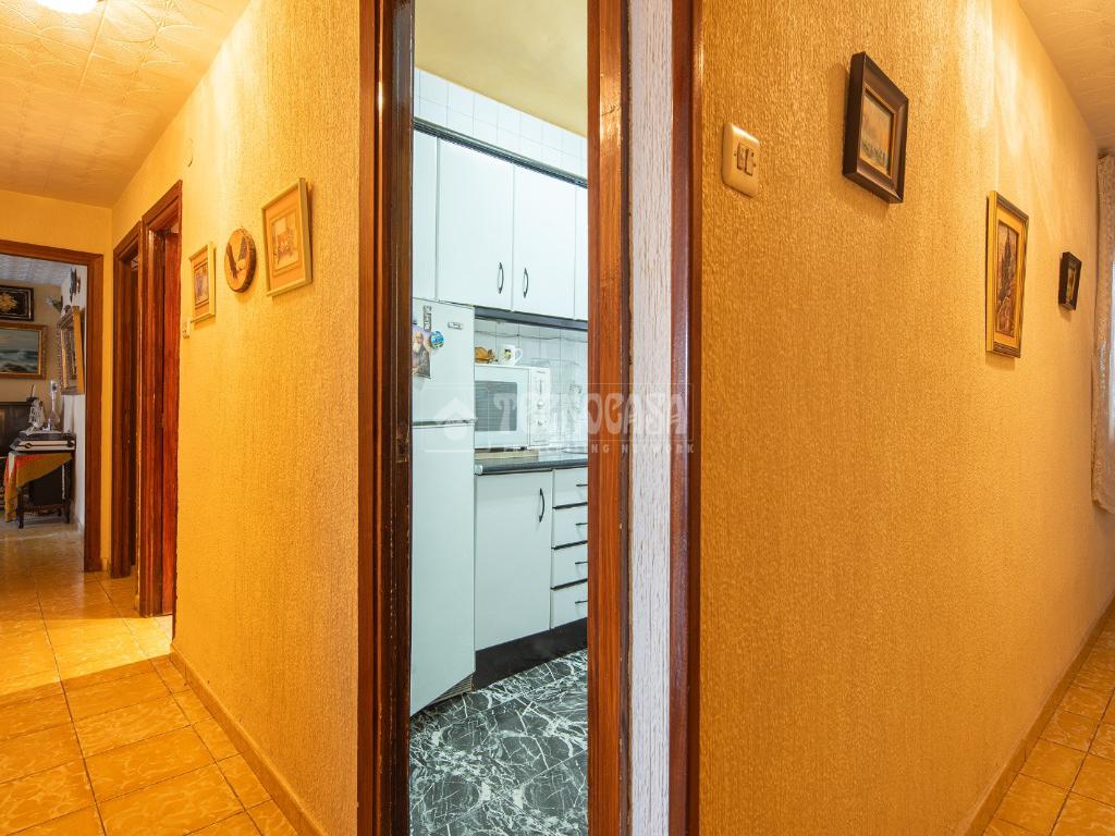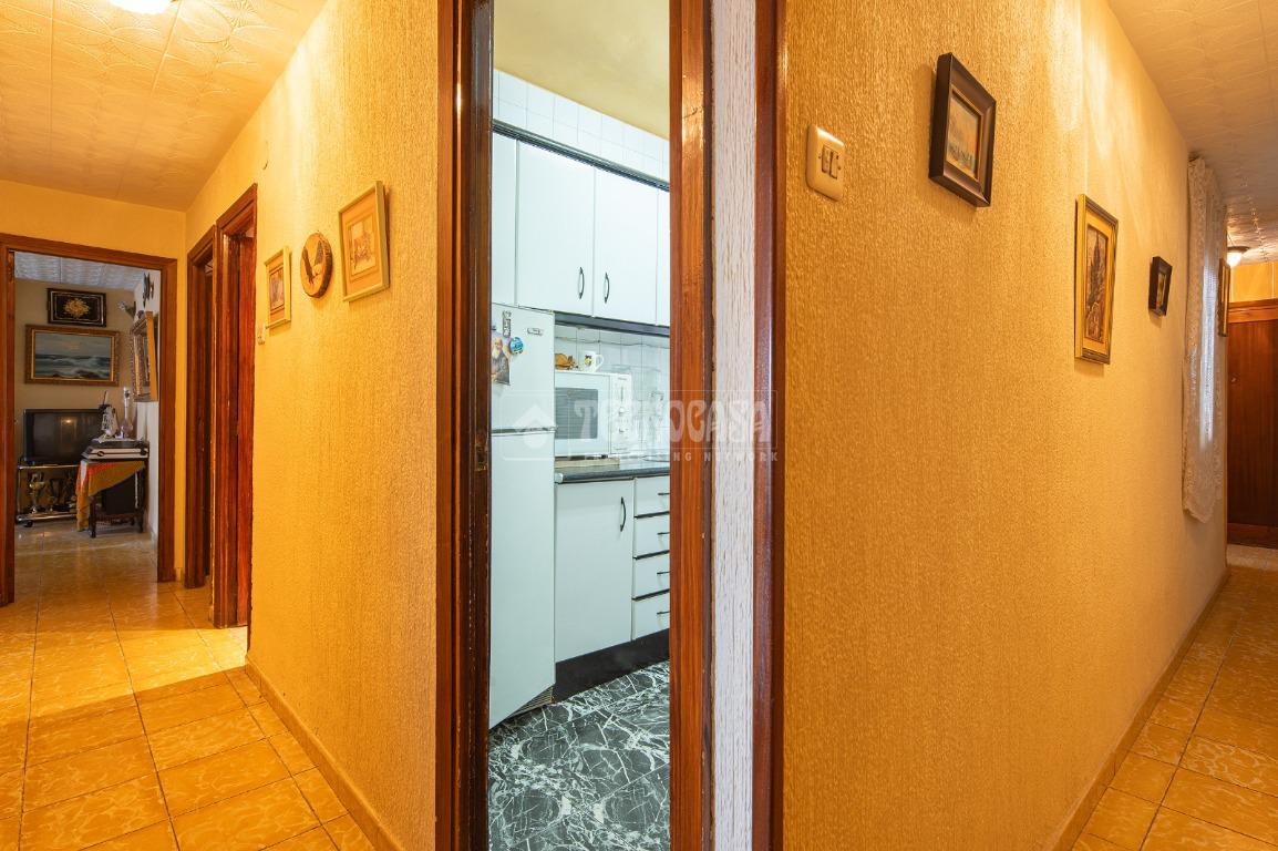 Al entrar a la propiedad nos encontramos un recibidor con pasillo que da acceso directo a la primera habitación, acondicionada en la actualidad como salita de estar. Este pasillo gira a la derecha para dar acceso al resto de estancias: cocina-lavadero, baño y habitación individual, llegando al final al espacioso salón-comedor con acceso a la última habitación doble exterior. Originalmente el salón disponía de balcón, y se le ganó el espacio con un cerramiento. Dispone de aparato de aire acondicionado.