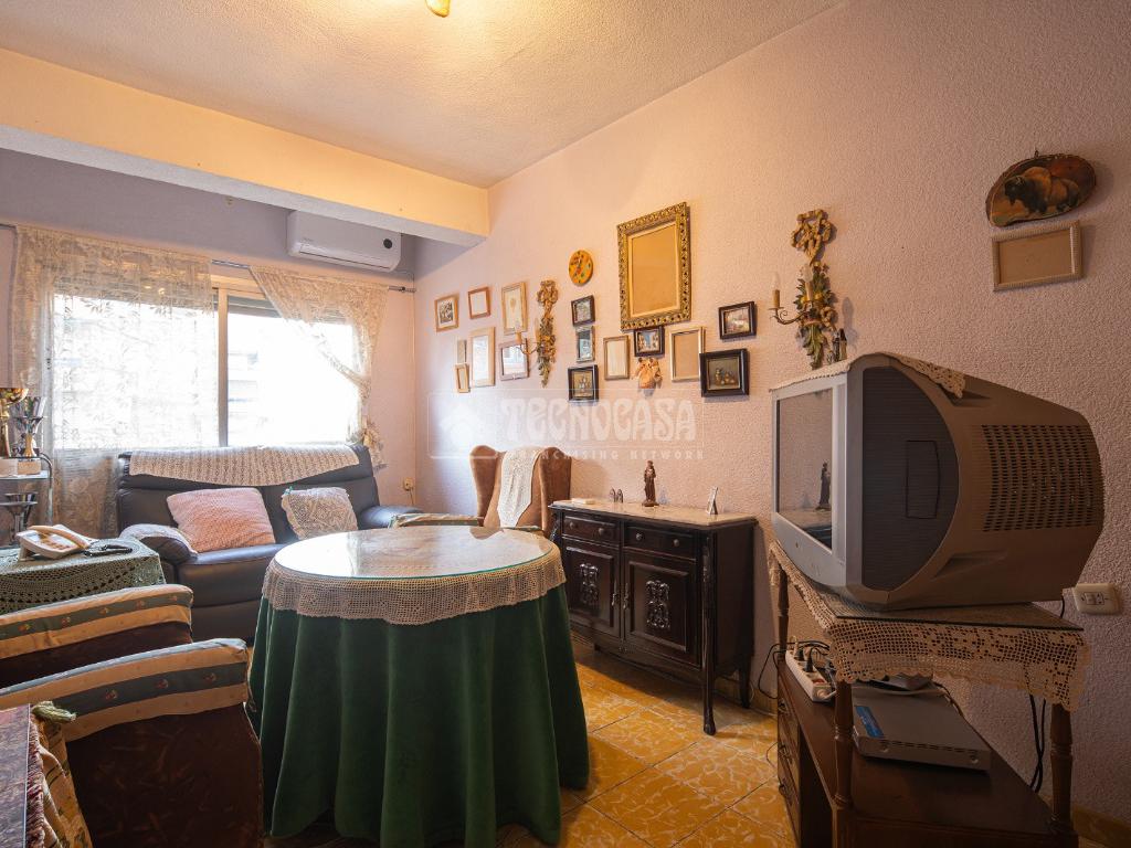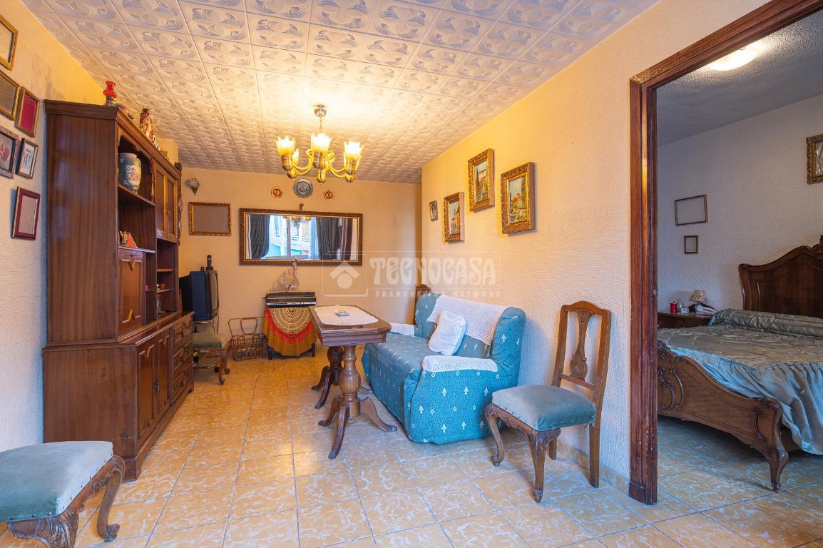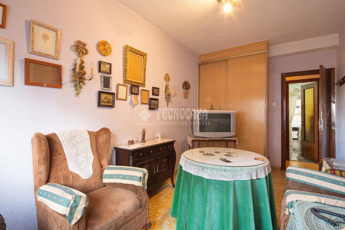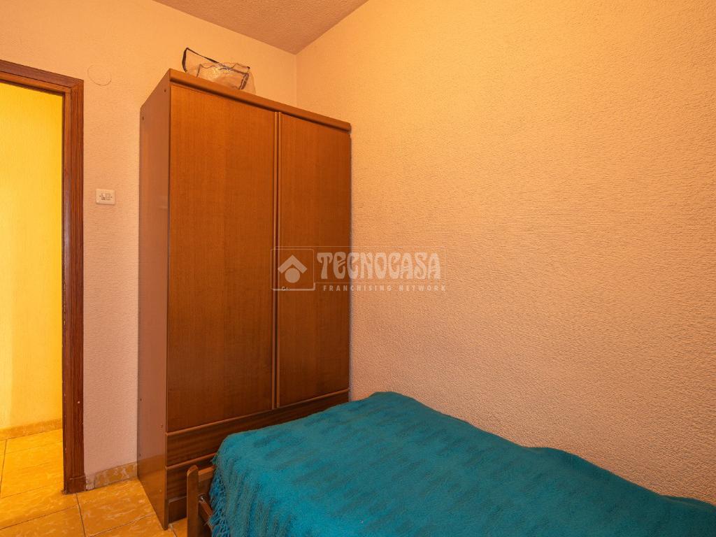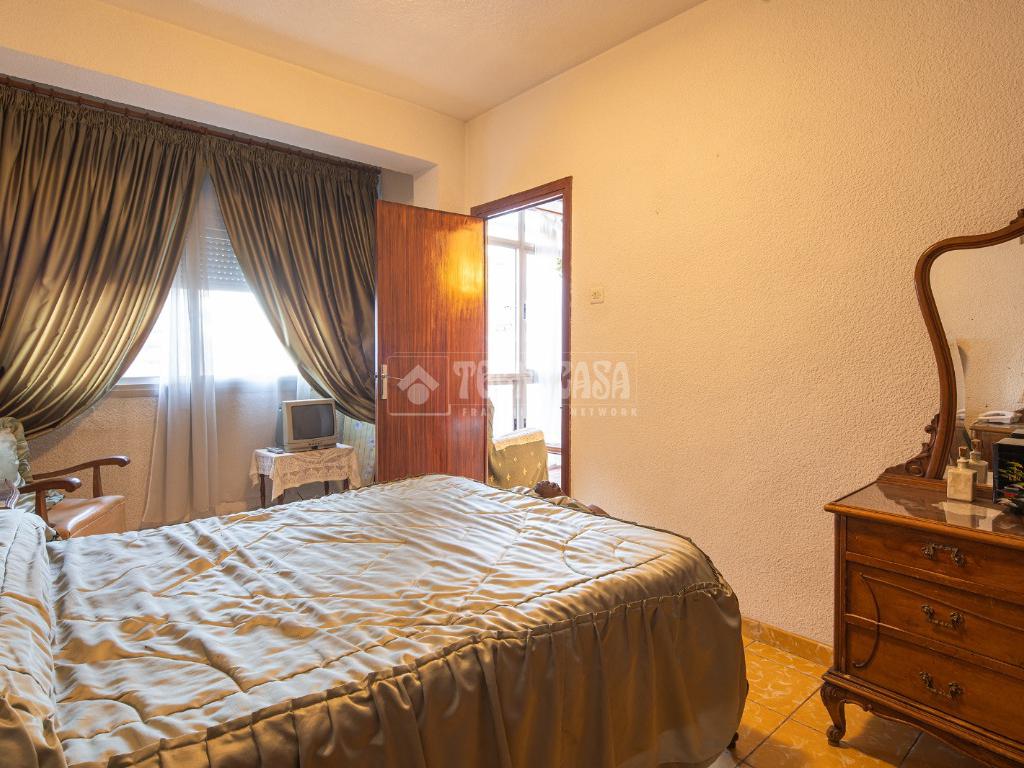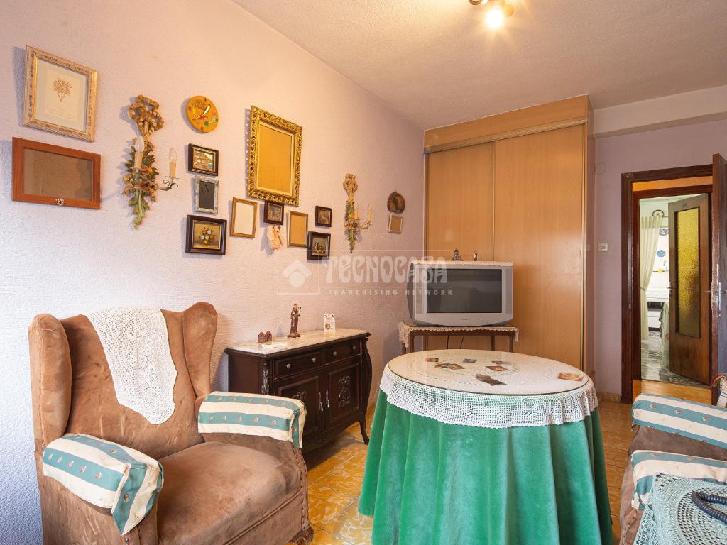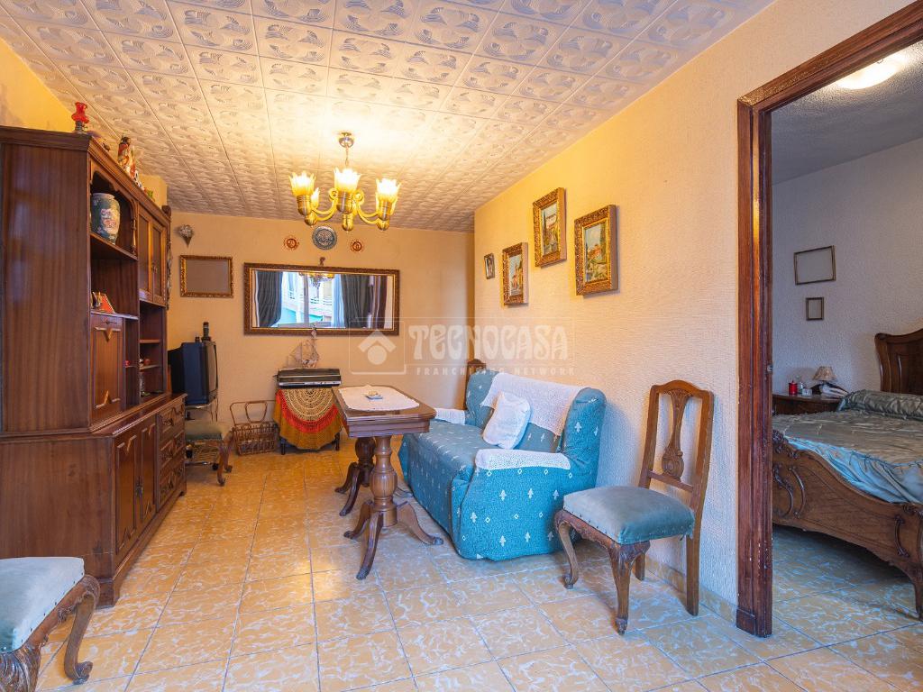 Al entrar a la propiedad nos encontramos un recibidor con pasillo que da acceso directo a la primera habitación, acondicionada en la actualidad como salita de estar. Este pasillo gira a la derecha para dar acceso al resto de estancias: cocina-lavadero, baño y habitación individual, llegando al final al espacioso salón-comedor con acceso a la última habitación doble exterior. Originalmente el salón disponía de balcón, y se le ganó el espacio con un cerramiento. Dispone de aparato de aire acondicionado.