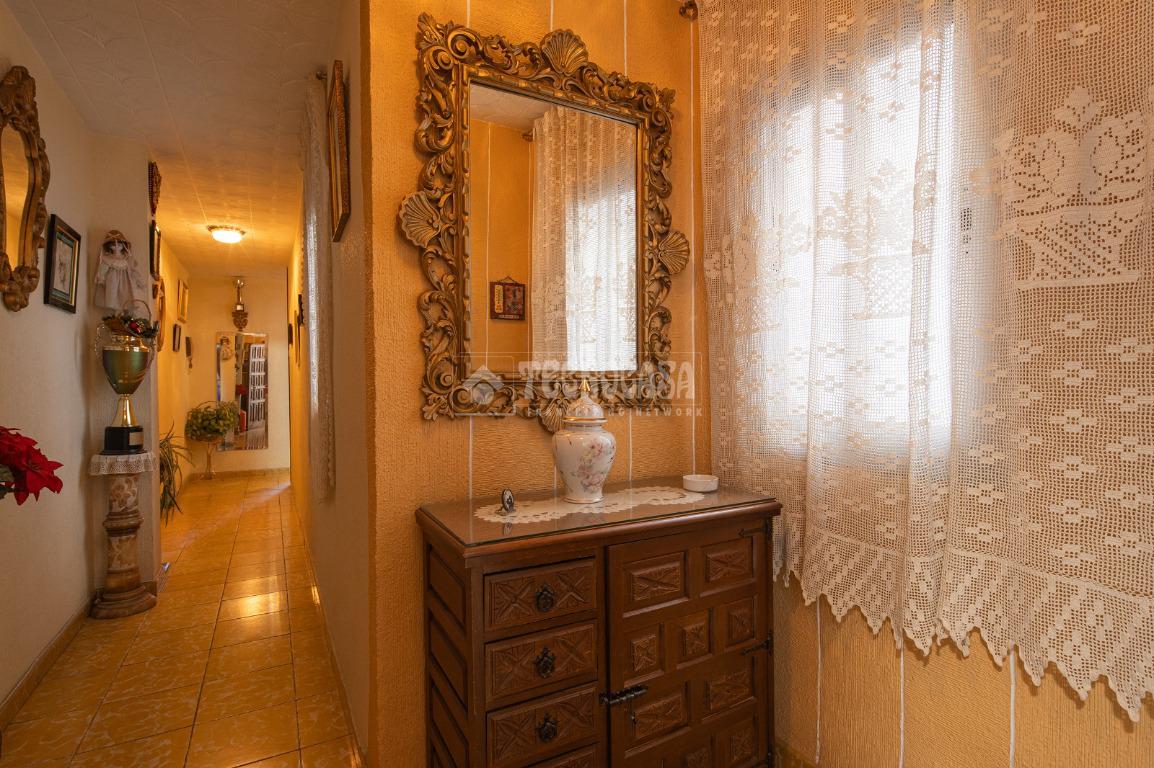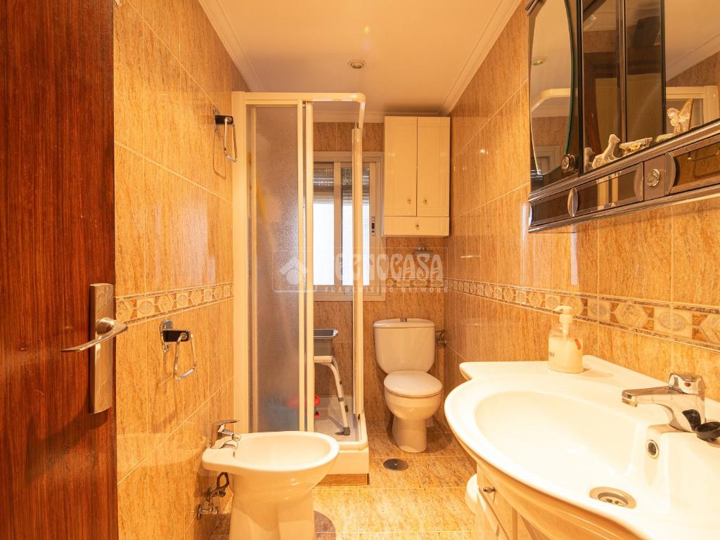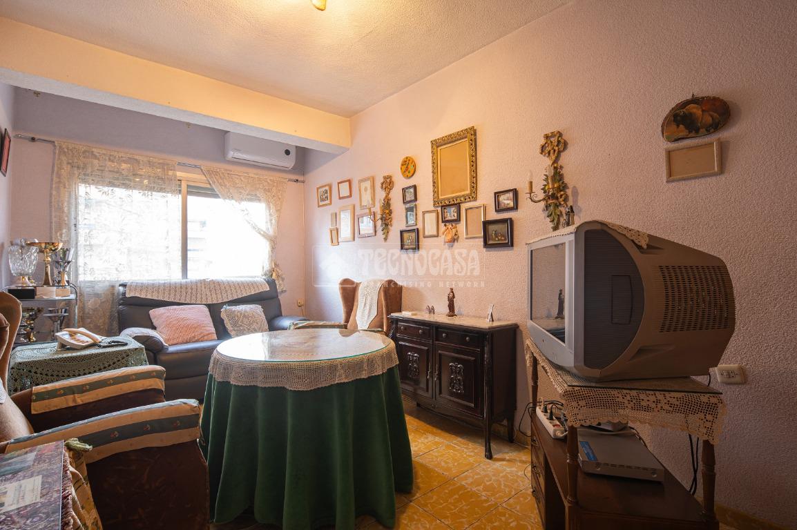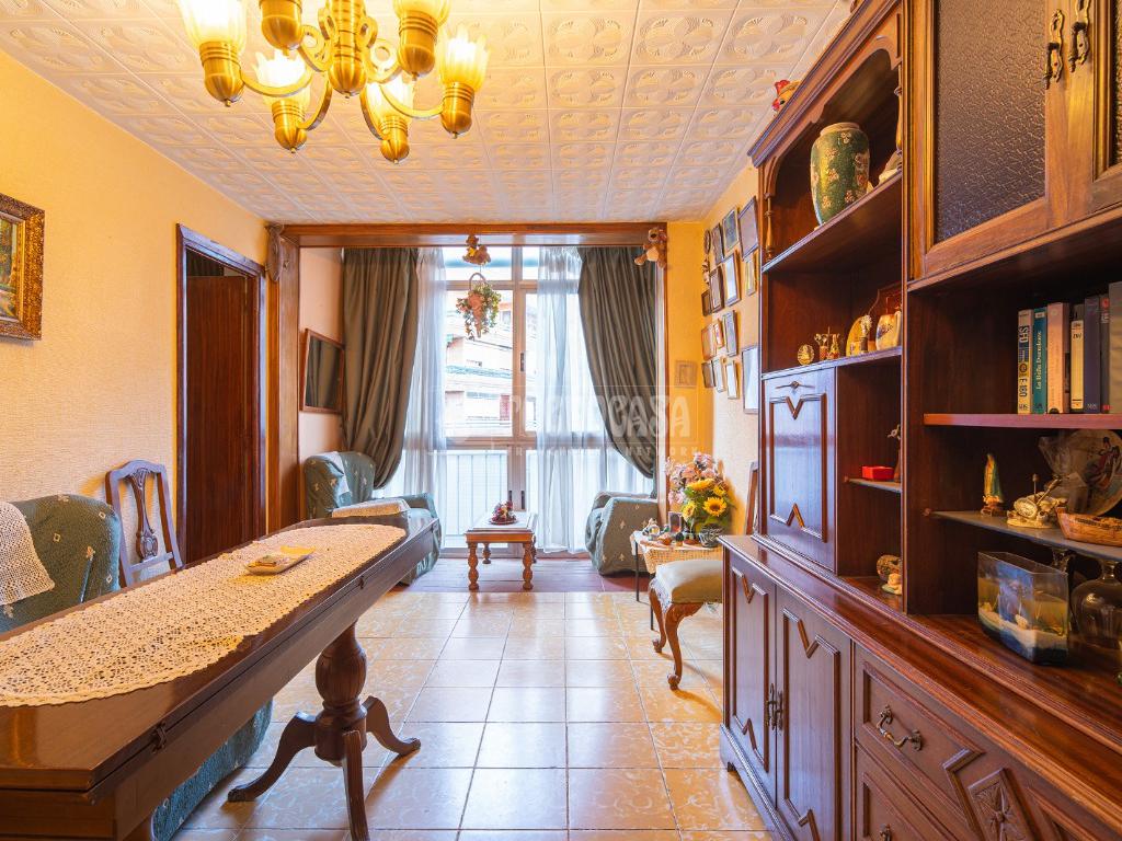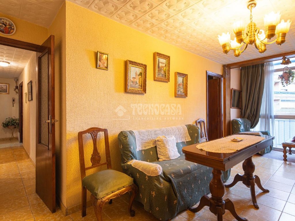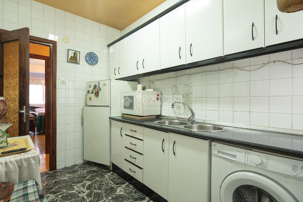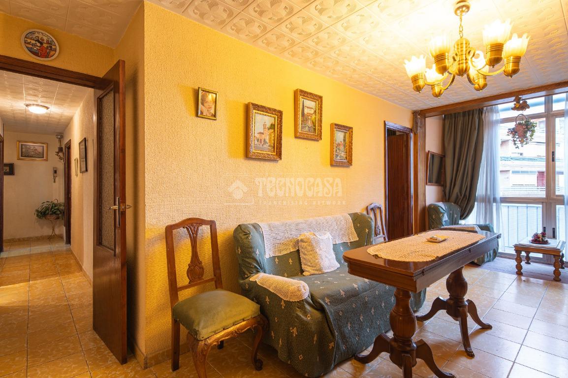 Al entrar a la propiedad nos encontramos un recibidor con pasillo que da acceso directo a la primera habitación, acondicionada en la actualidad como salita de estar. Este pasillo gira a la derecha para dar acceso al resto de estancias: cocina-lavadero, baño y habitación individual, llegando al final al espacioso salón-comedor con acceso a la última habitación doble exterior. Originalmente el salón disponía de balcón, y se le ganó el espacio con un cerramiento. Dispone de aparato de aire acondicionado.