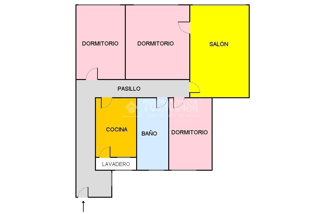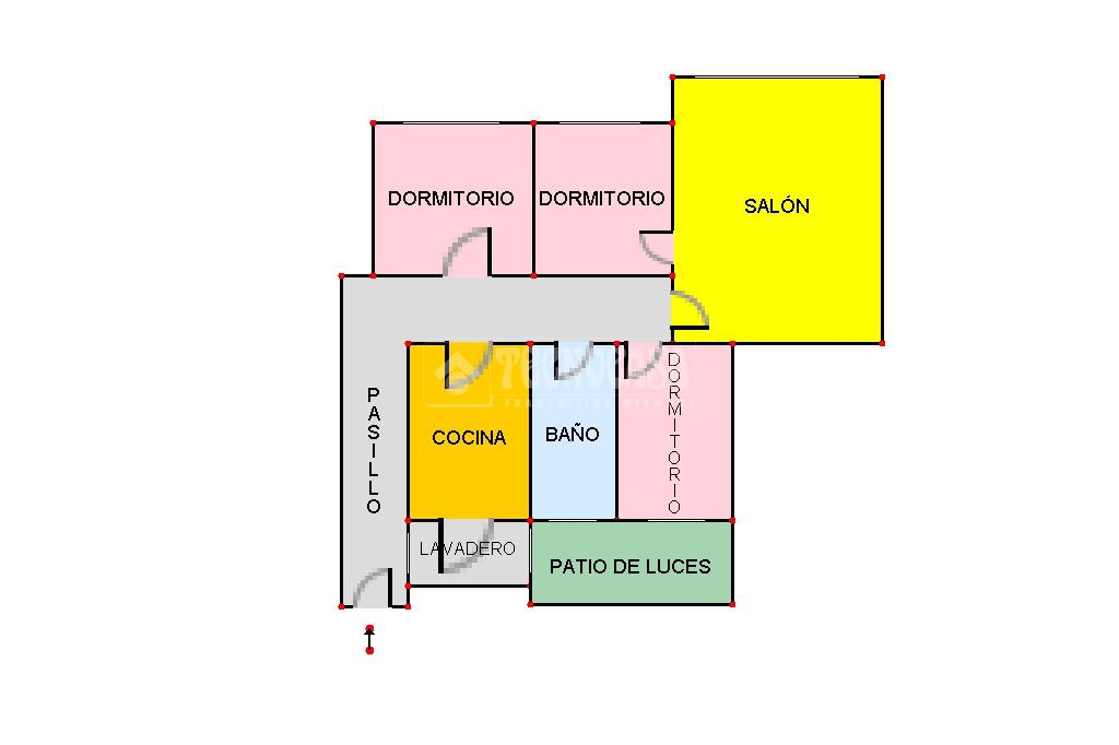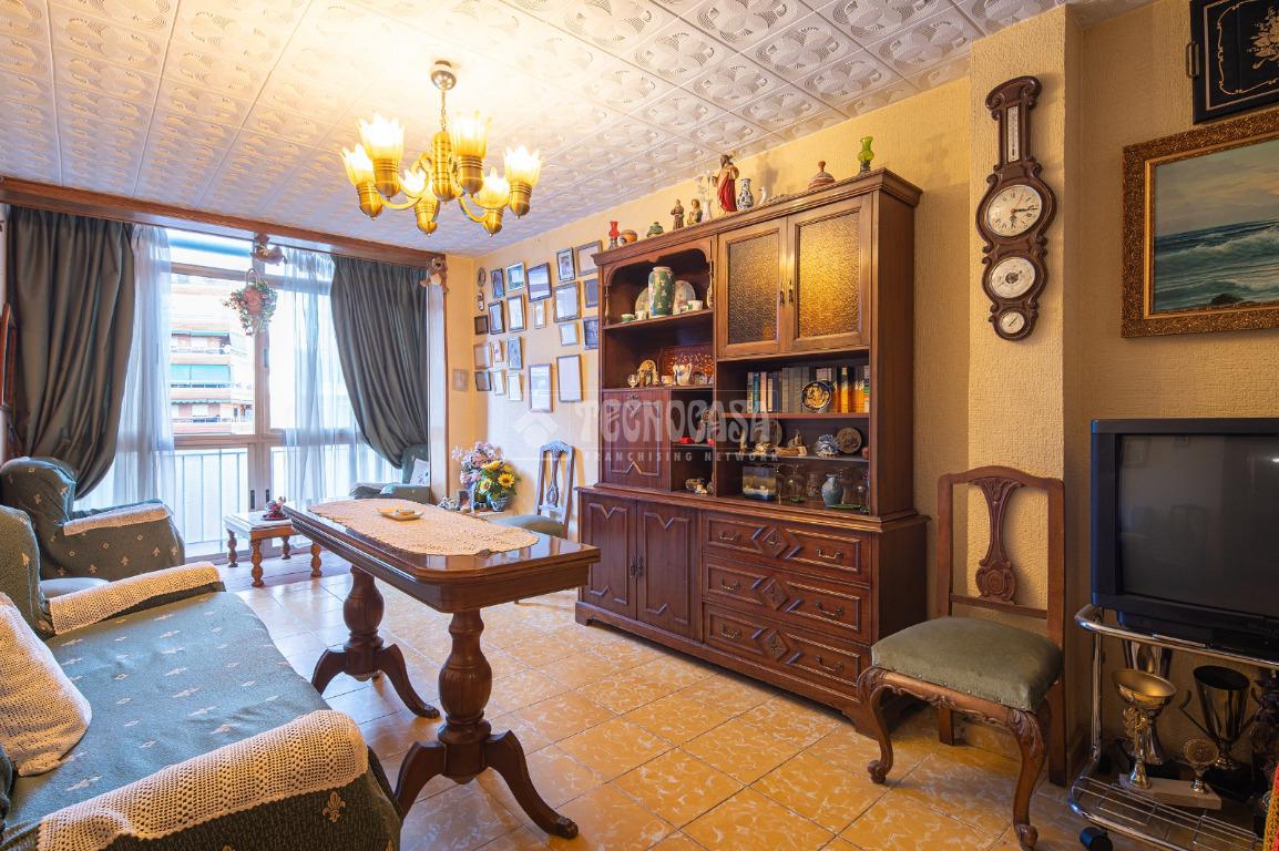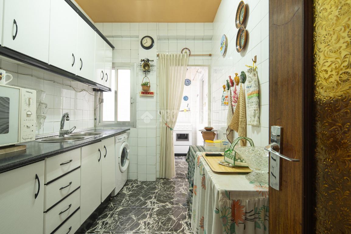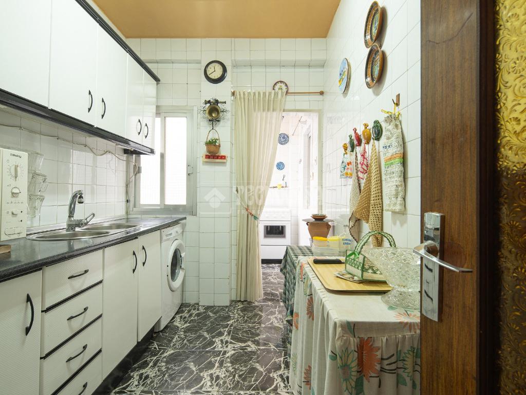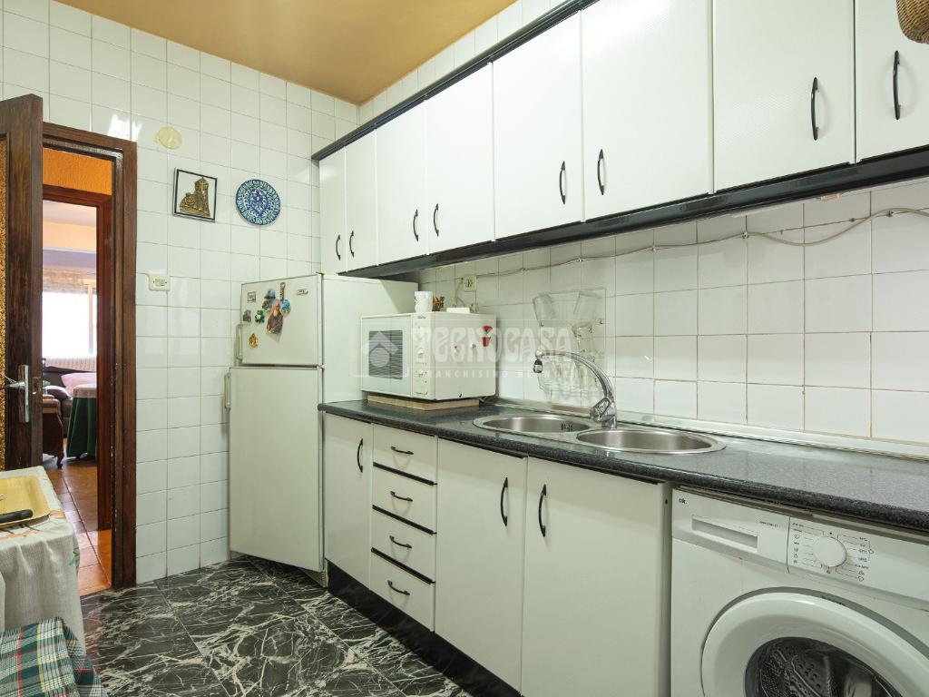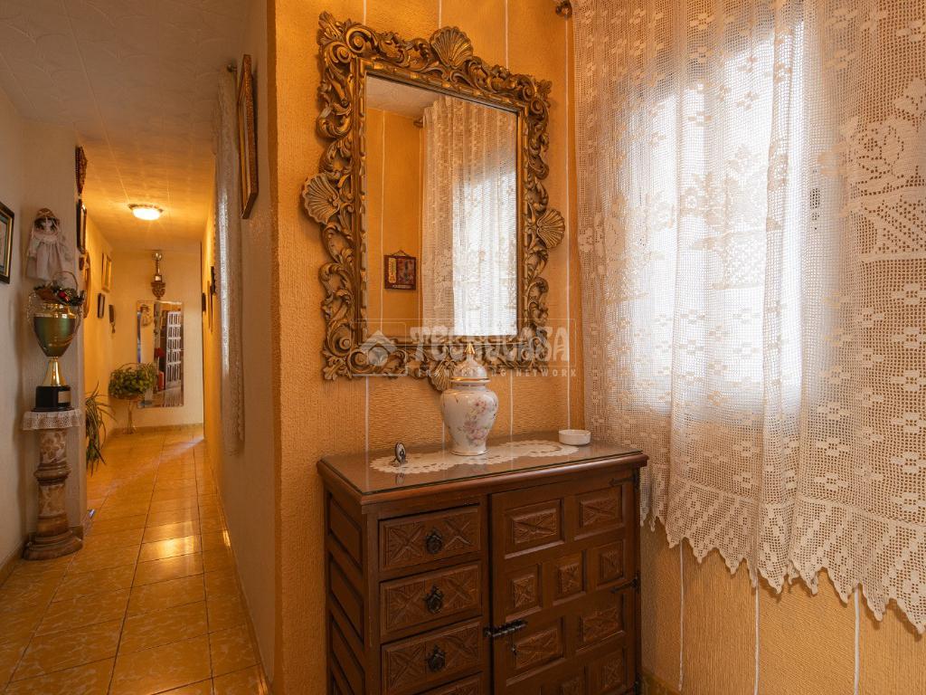Al entrar a la propiedad nos encontramos un recibidor con pasillo que da acceso directo a la primera habitación, acondicionada en la actualidad como salita de estar. Este pasillo gira a la derecha para dar acceso al resto de estancias: cocina-lavadero, baño y habitación individual, llegando al final al espacioso salón-comedor con acceso a la última habitación doble exterior. Originalmente el salón disponía de balcón, y se le ganó el espacio con un cerramiento. Dispone de aparato de aire acondicionado.