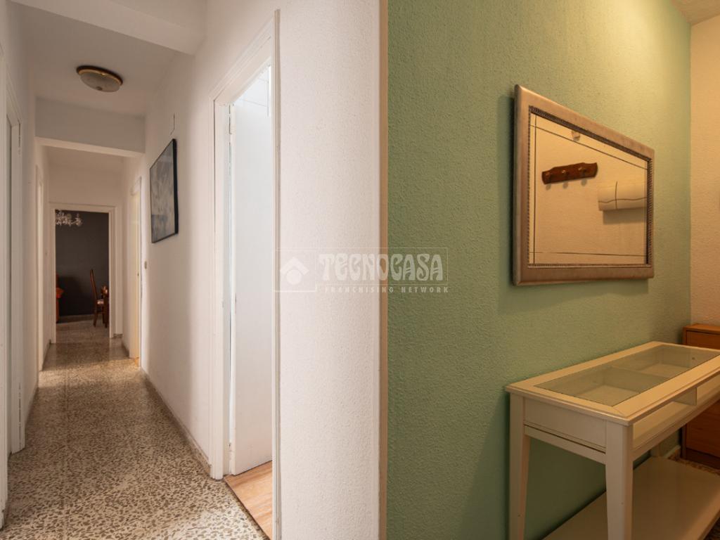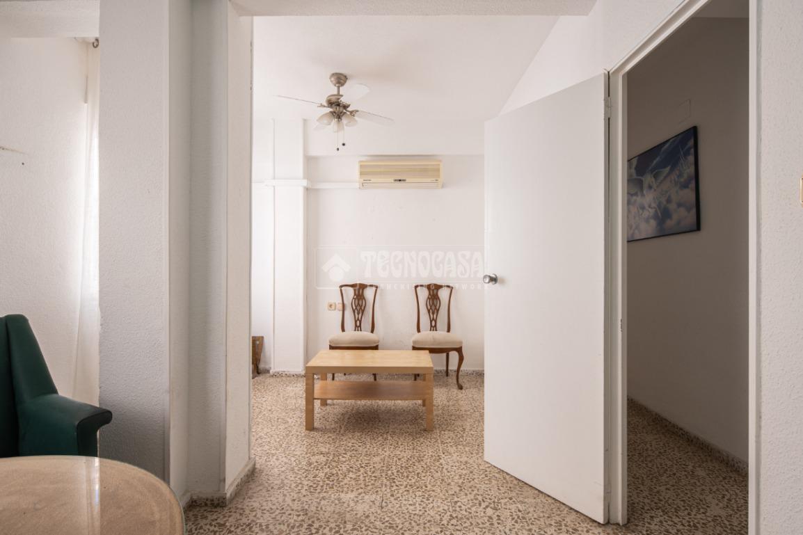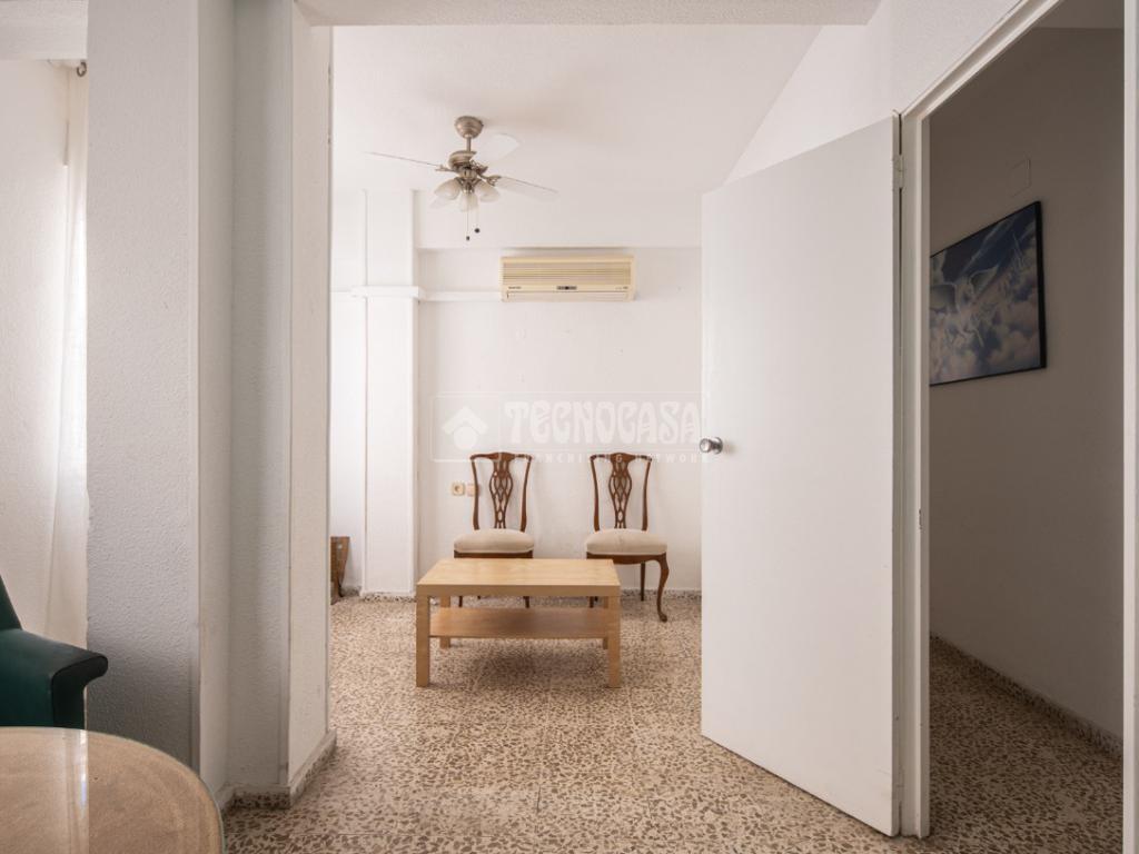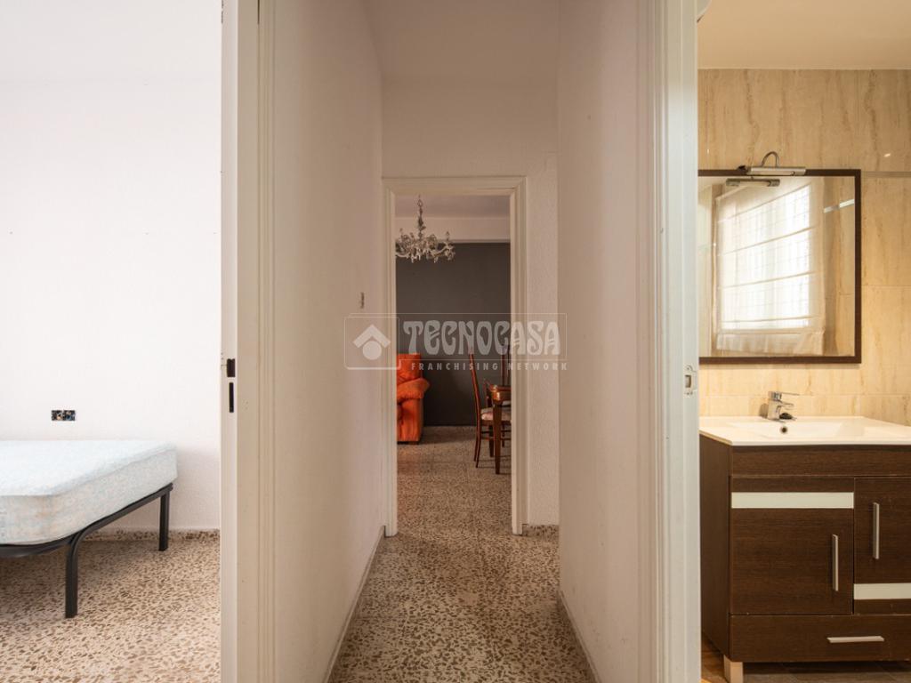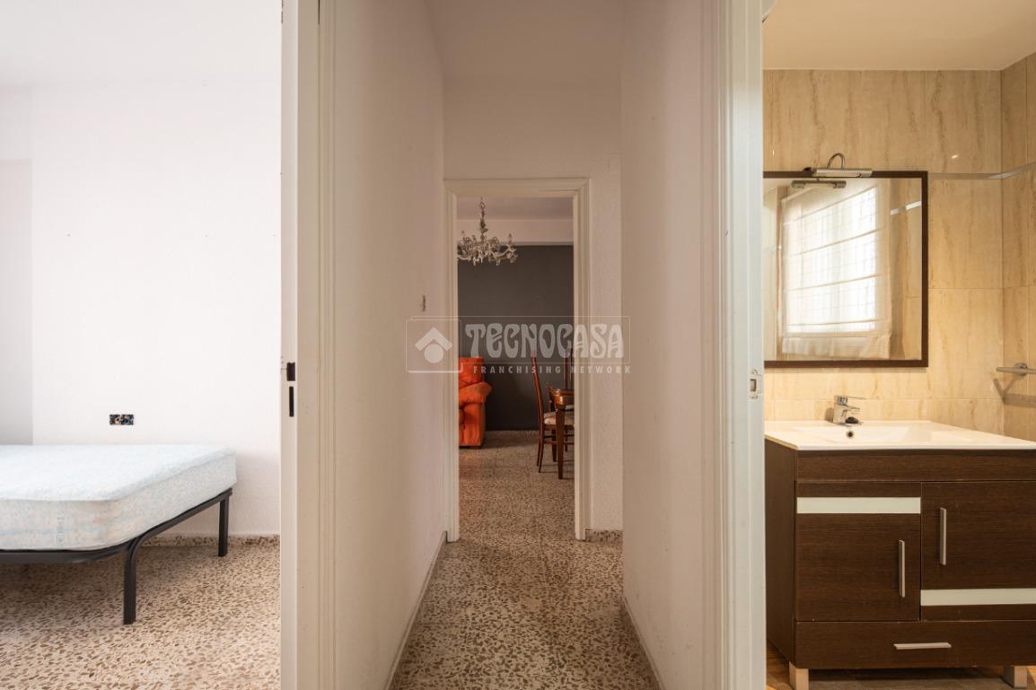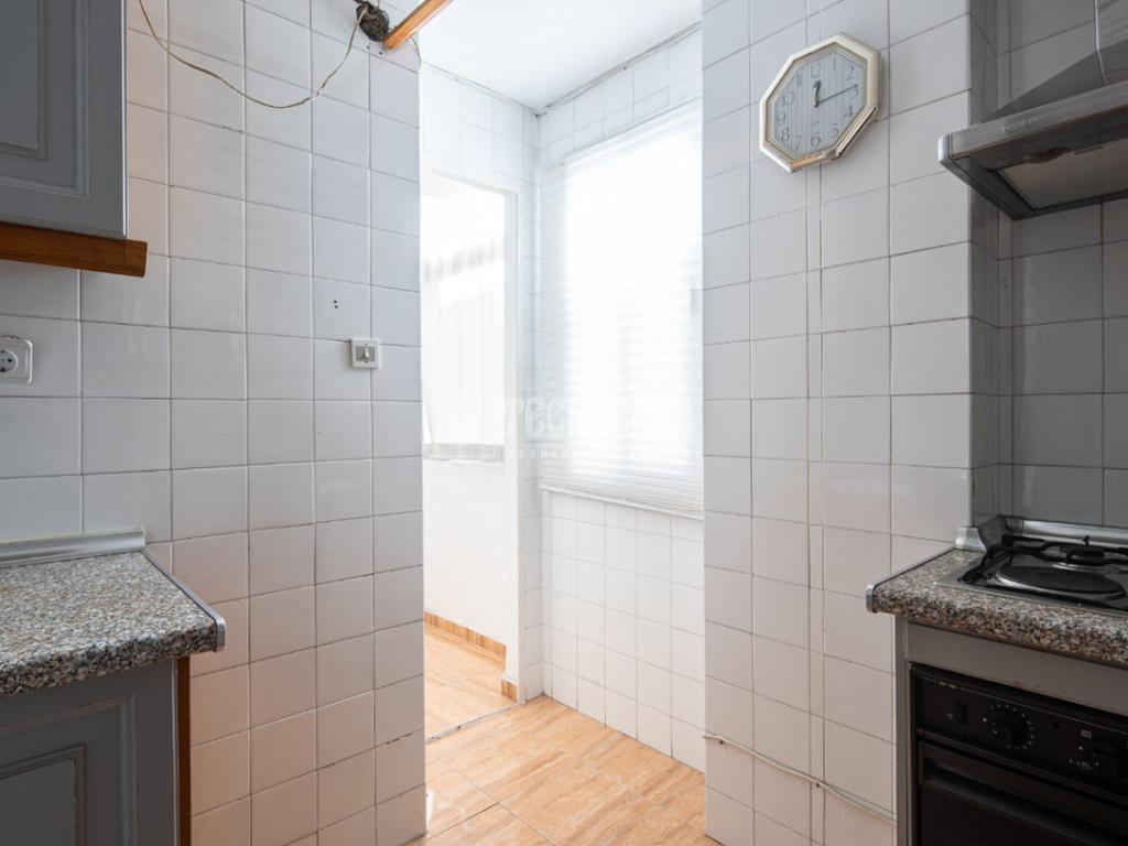 Al entrar a la propiedad nos encontramos con un pasillo distribuidor que da acceso a todas las estancias. Al lado izquierdo del pasillo se ubican dos dormitorios, uno doble con aire acondicionado (anteriormente eran dos dormitorios individuales que se podrían volver a segregar) y uno individual. Al lado derecho del pasillo se encuentran el baño, reformado con plato de ducha y con ventana; y la cocina, que dispone de zona de lavadero. Agua caliente mediante gas butano.