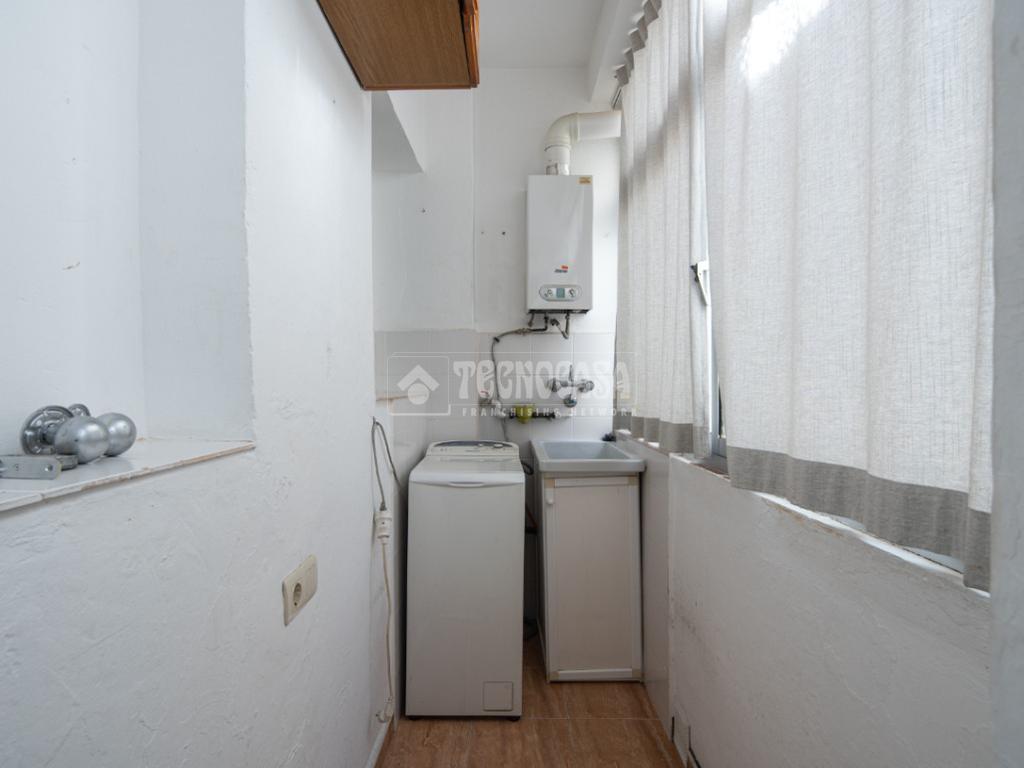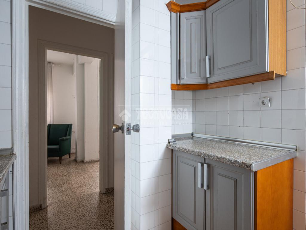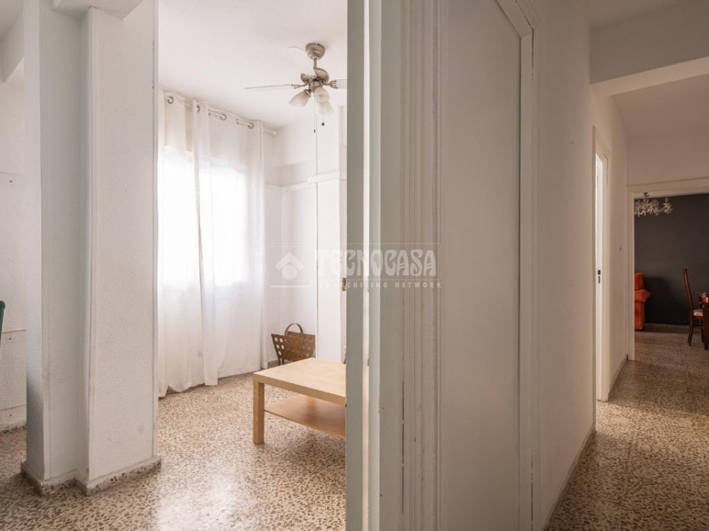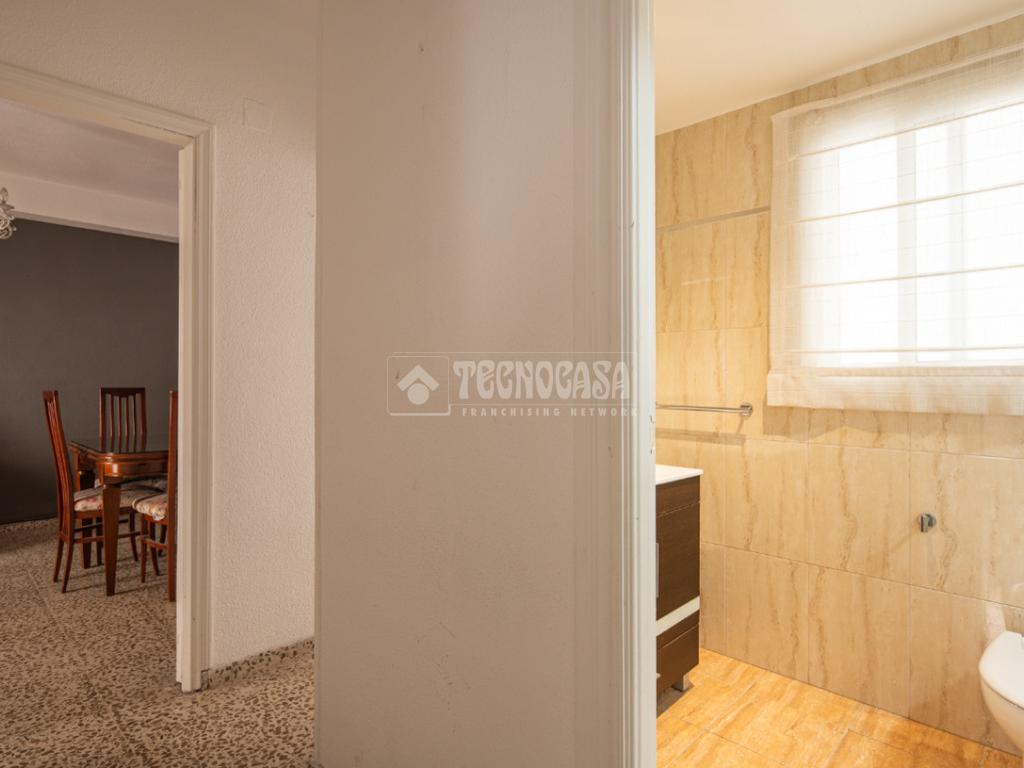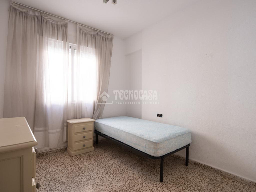 Al entrar a la propiedad nos encontramos con un pasillo distribuidor que da acceso a todas las estancias. Al lado izquierdo del pasillo se ubican dos dormitorios, uno doble con aire acondicionado (anteriormente eran dos dormitorios individuales que se podrían volver a segregar) y uno individual. Al lado derecho del pasillo se encuentran el baño, reformado con plato de ducha y con ventana; y la cocina, que dispone de zona de lavadero. Agua caliente mediante gas butano.