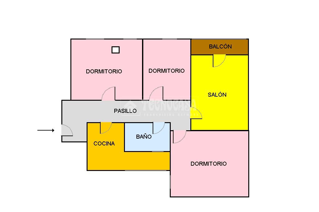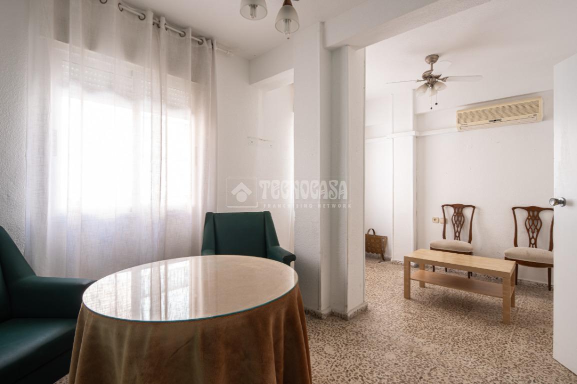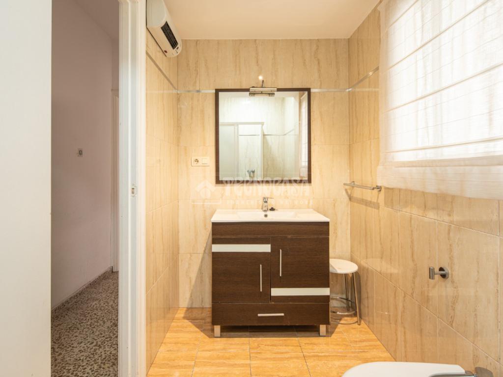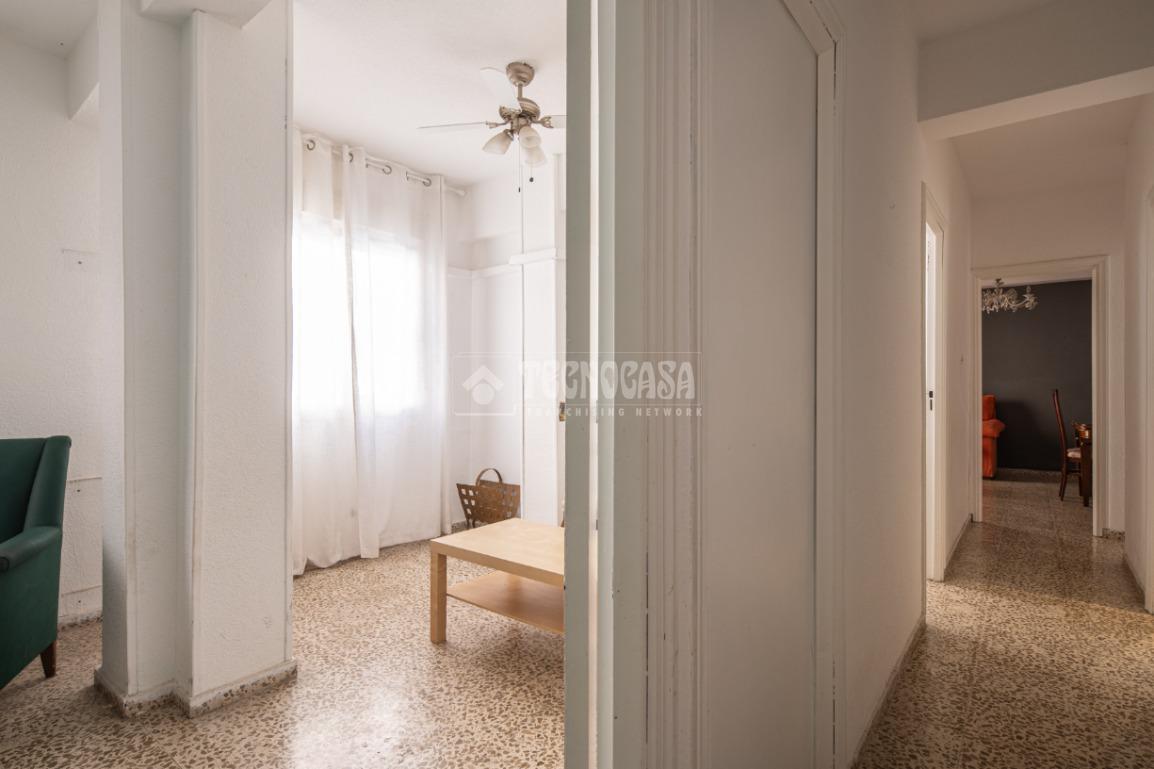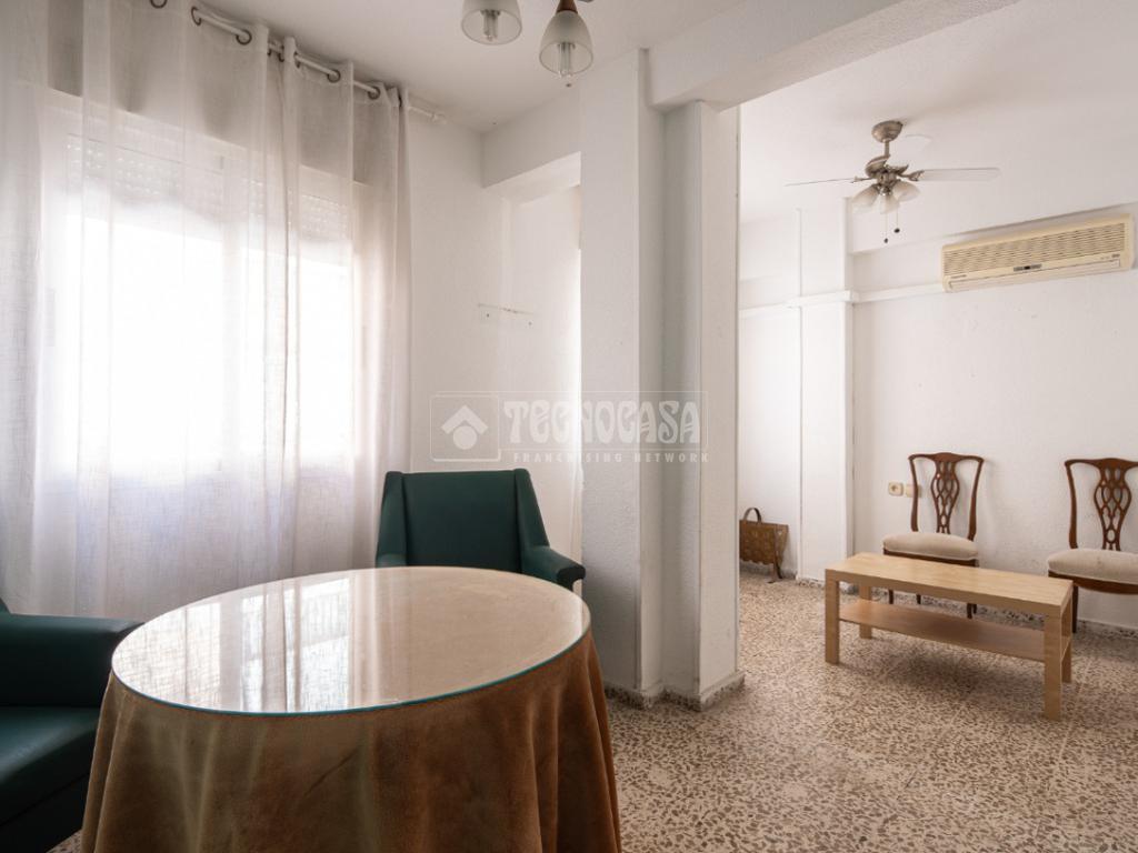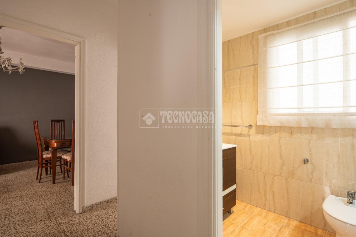 Al entrar a la propiedad nos encontramos con un pasillo distribuidor que da acceso a todas las estancias. Al lado izquierdo del pasillo se ubican dos dormitorios, uno doble con aire acondicionado (anteriormente eran dos dormitorios individuales que se podrían volver a segregar) y uno individual. Al lado derecho del pasillo se encuentran el baño, reformado con plato de ducha y con ventana; y la cocina, que dispone de zona de lavadero. Agua caliente mediante gas butano.