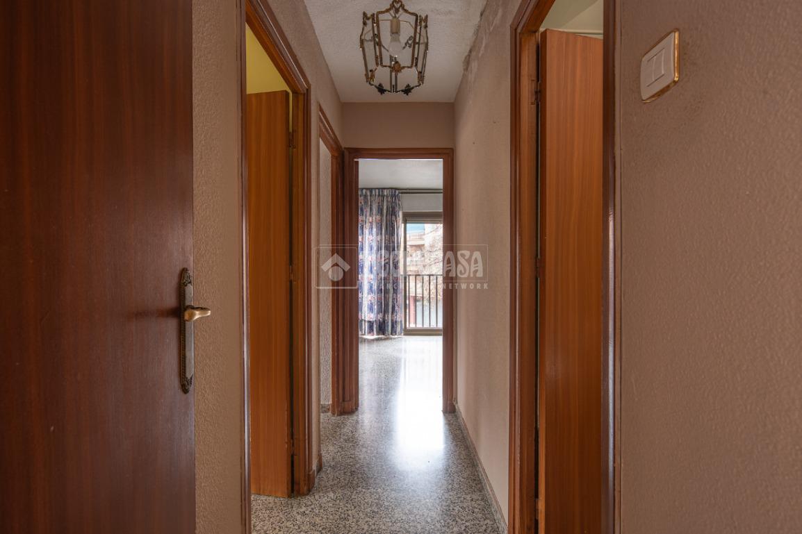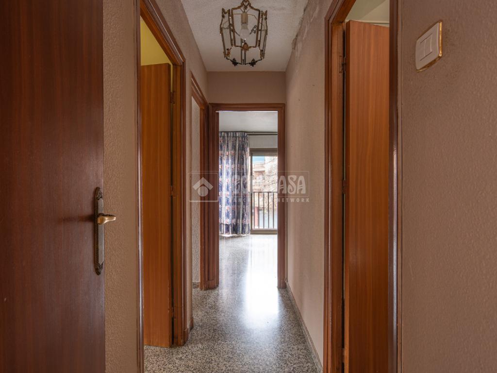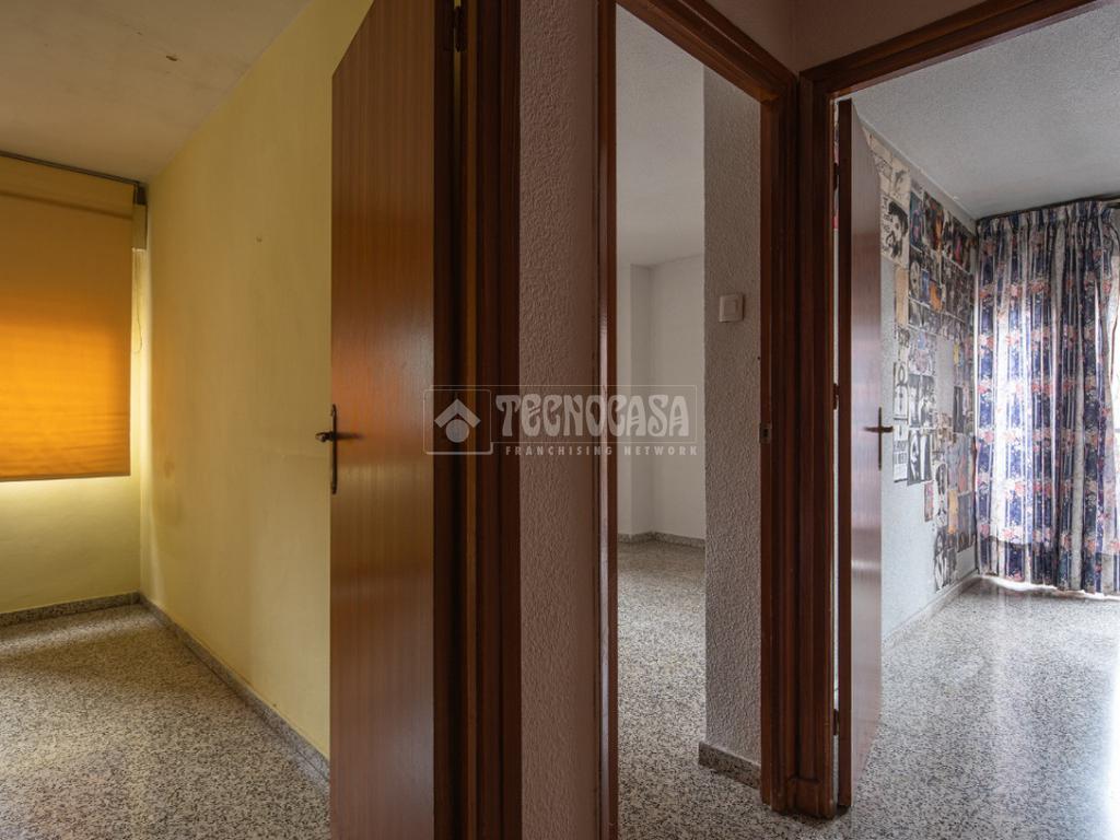 Desde un lateral del salón se accede a la zona de descanso de la vivienda. A la derecha se ubica un amplio baño con instalación de bañera. Al lado izquierdo se encuentran un dormitorio doble y un dormitorio individual. Al fondo del pasillo se ubica el tercer dormitorio, individual, con instalación de armario empotrado. Toda la vivienda tiene orientación sureste, despejado por delante, al encontrarse justo debajo un amplio acceso a las cocheras del edificio. Un dormitorio individual tiene orientación suroeste.